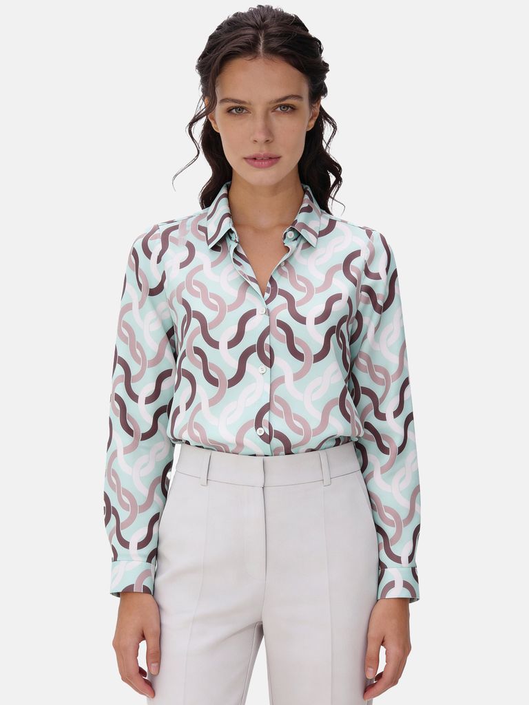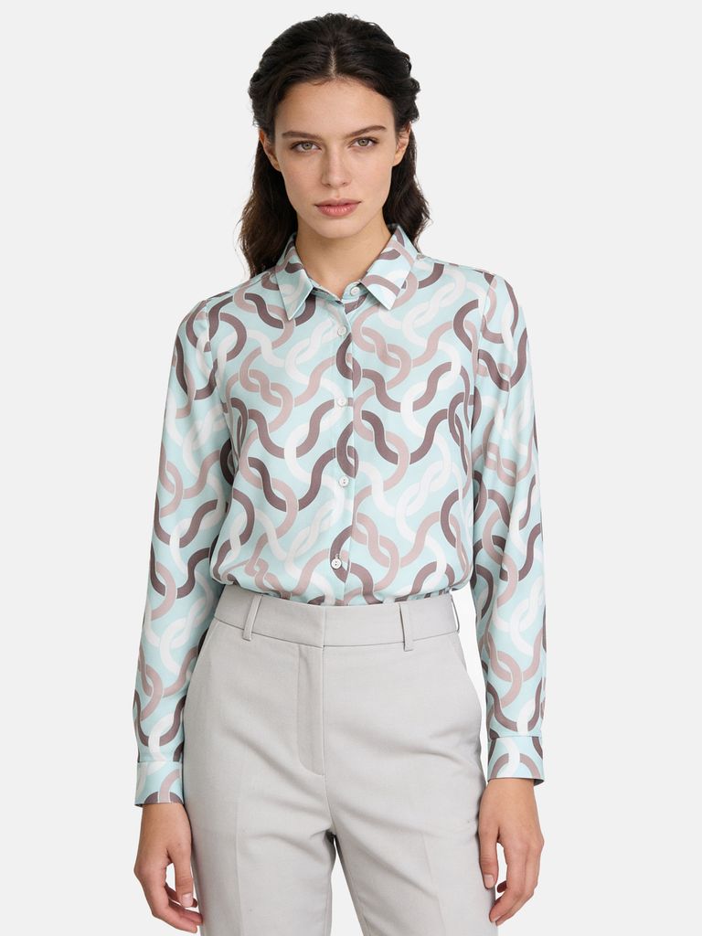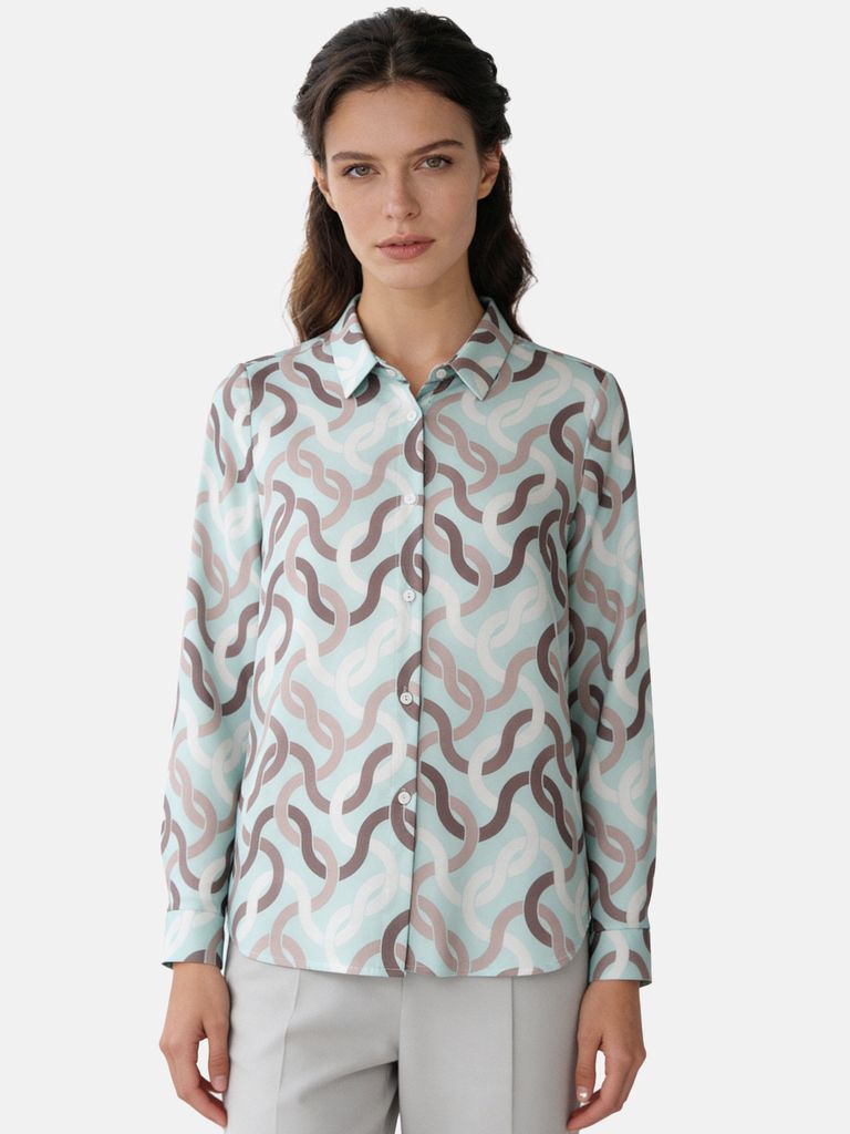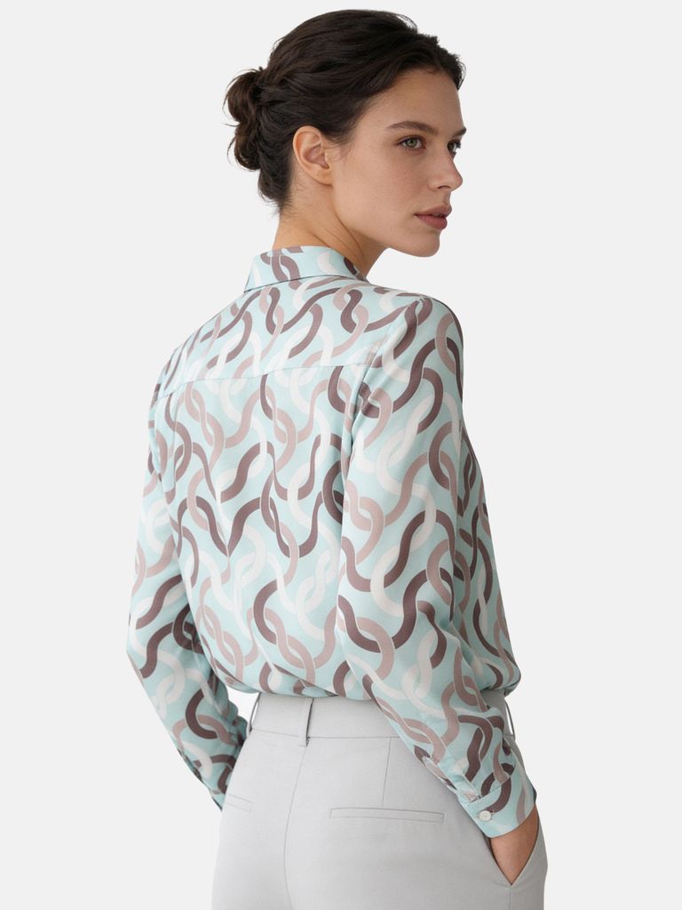 Diese gemusterte Bluse bringt frischen Wind in deinen Look. Mit ihrem modernen Design, fließendem Stoff und angesagten Farben ist sie ein echtes Fashion-Highlight. Perfekt zum Kombinieren mit High-Waist-Hosen, Jeans oder Röcken – für ein feminines und zugleich lässig-elegantes Outfit.