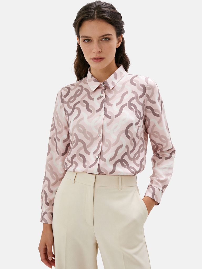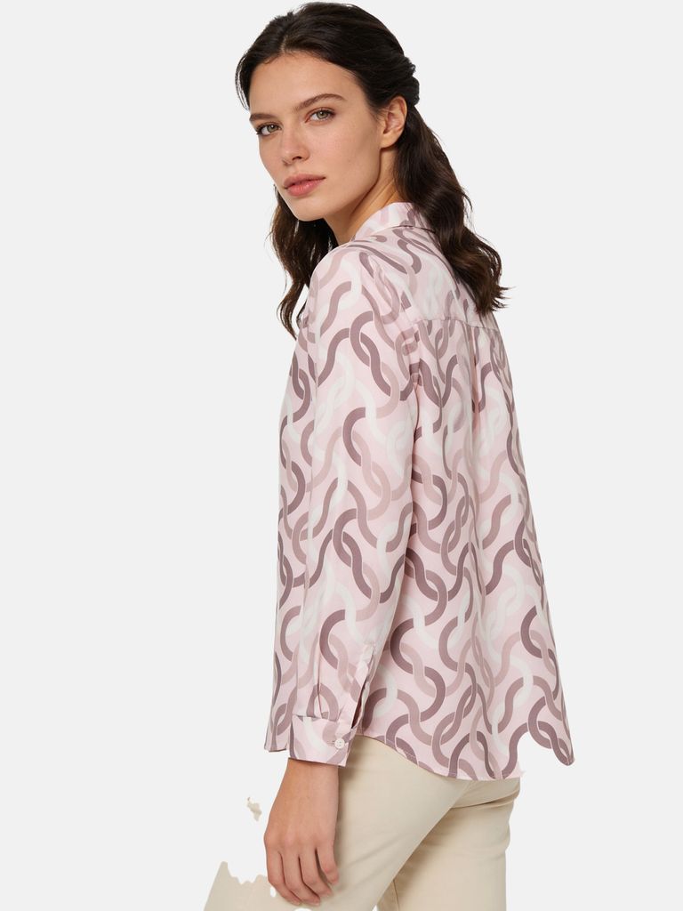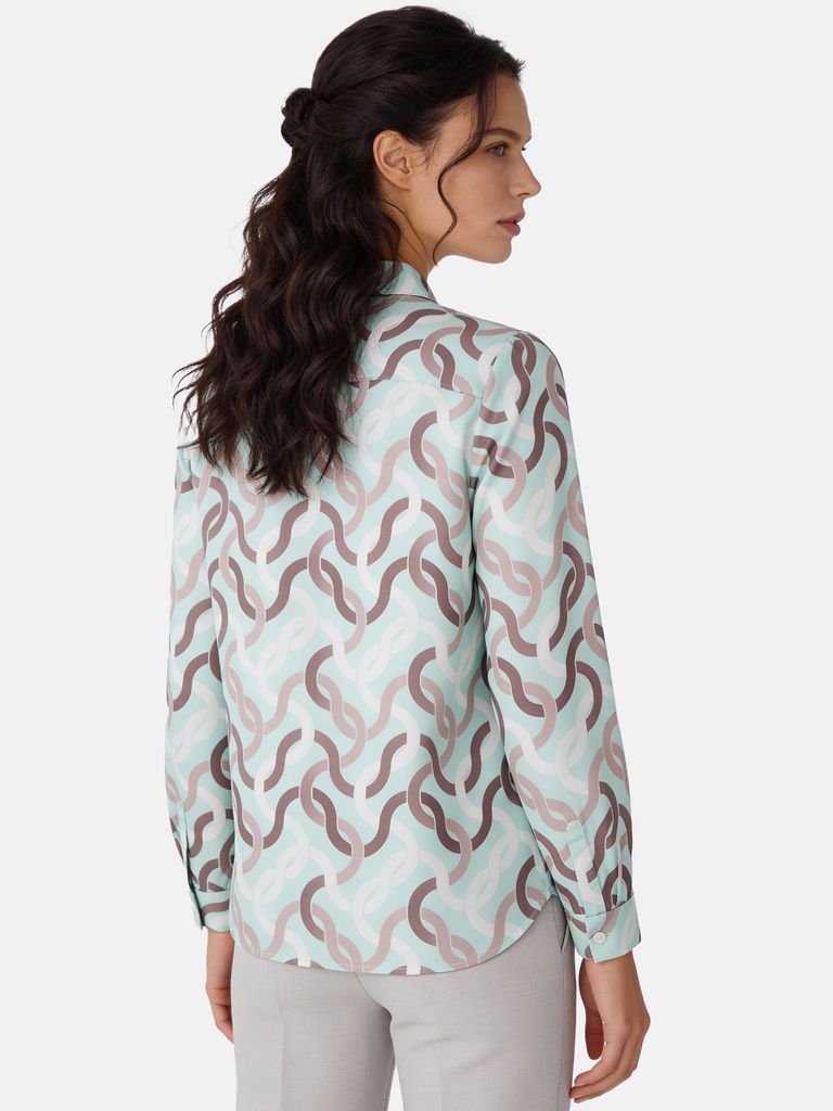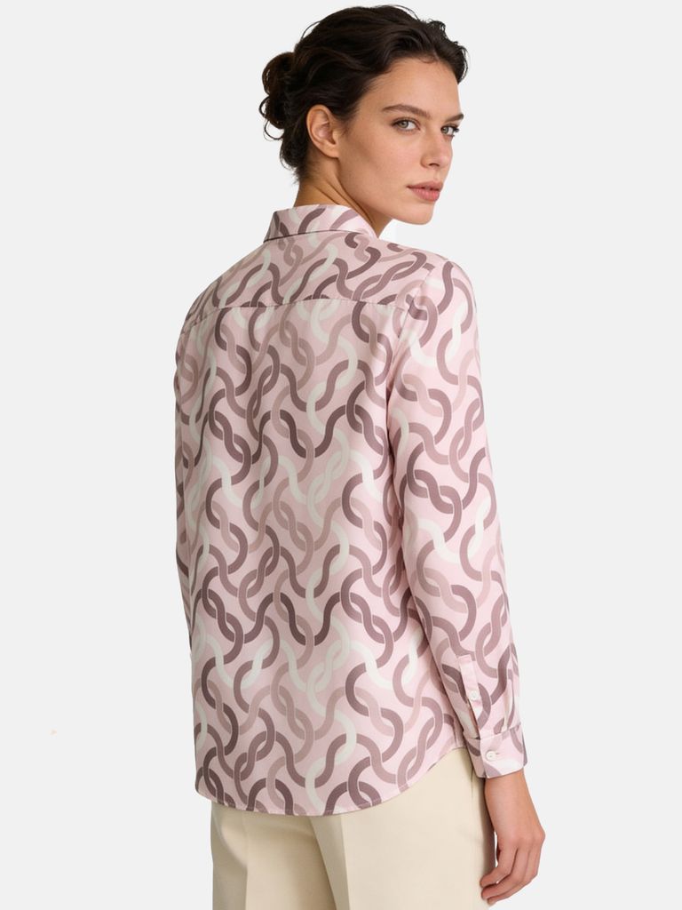 Diese gemusterte Bluse bringt frischen Wind in deinen Look. Mit ihrem modernen Design, fließendem Stoff und angesagten Farben ist sie ein echtes Fashion-Highlight. Perfekt zum Kombinieren mit High-Waist-Hosen, Jeans oder Röcken – für ein feminines und zugleich lässig-elegantes Outfit.
