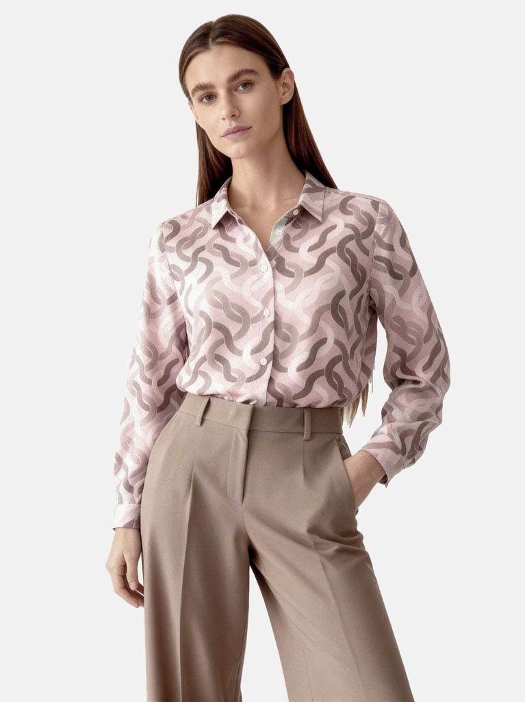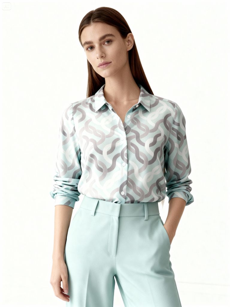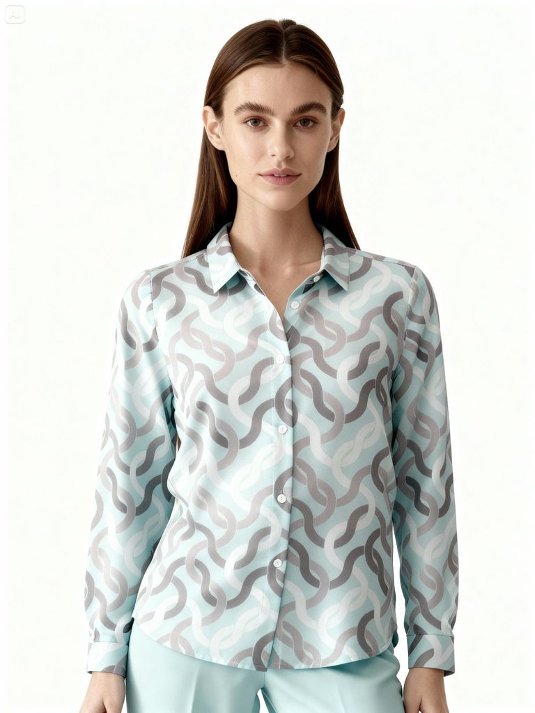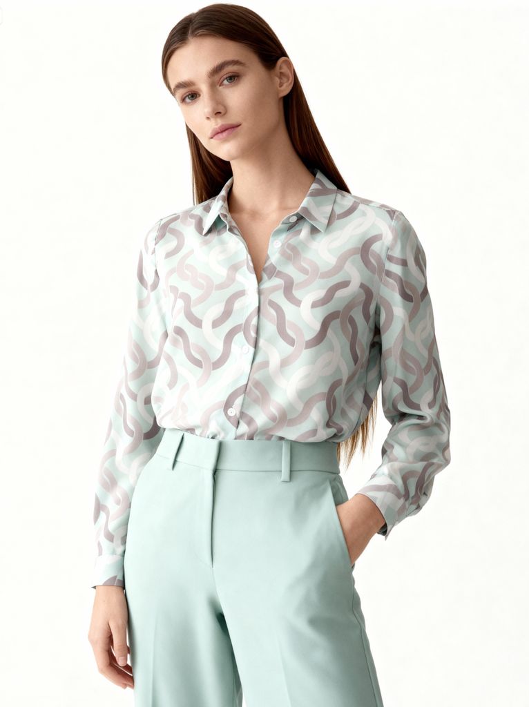 Diese gemusterte Bluse bringt frischen Wind in deinen Look. Mit ihrem modernen Design, fließendem Stoff und angesagten Farben ist sie ein echtes Fashion-Highlight. Perfekt zum Kombinieren mit High-Waist-Hosen, Jeans oder Röcken – für ein feminines und zugleich lässig-elegantes Outfit.